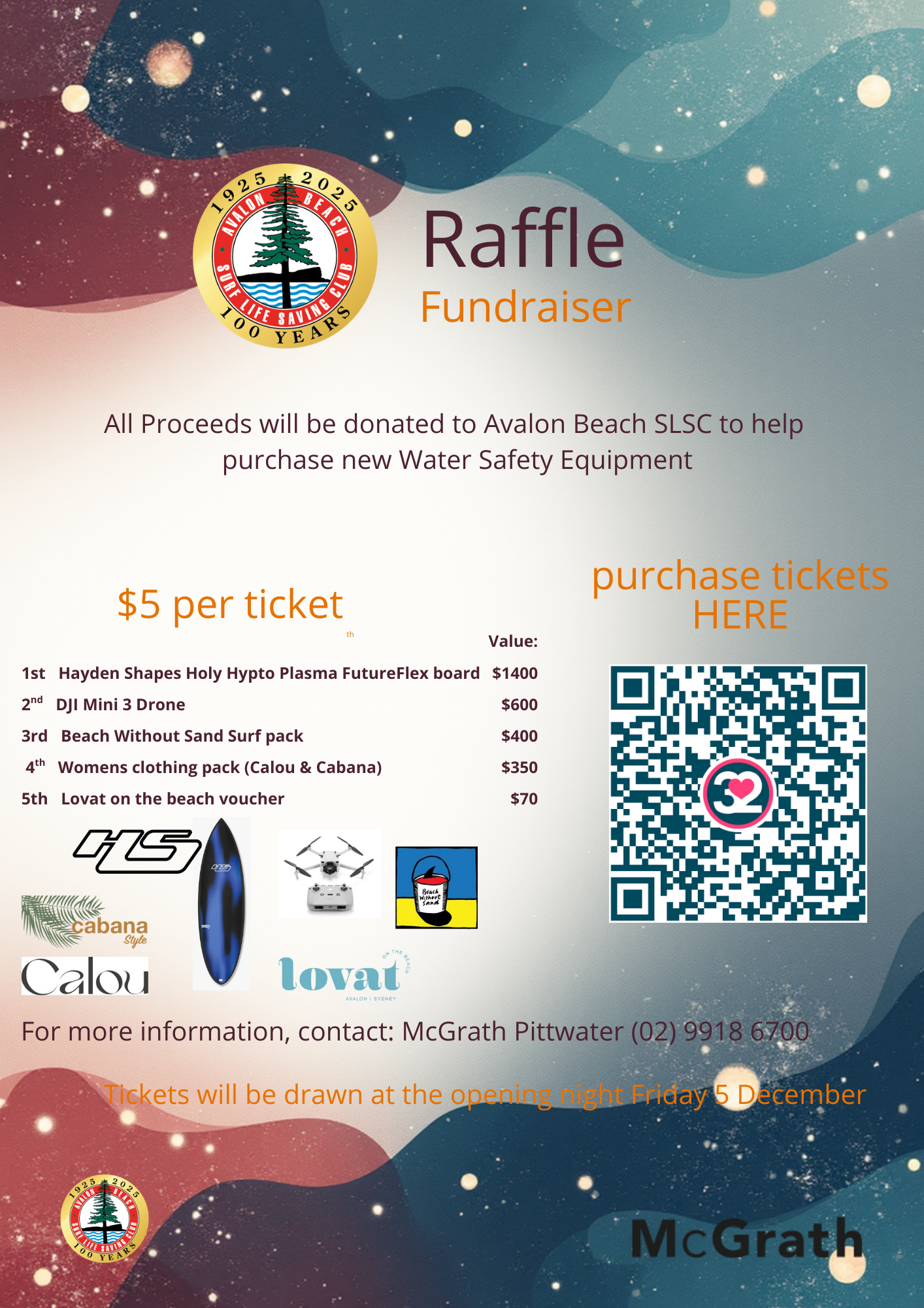 AvalonBeach SLSC x McGrath Raffle (1) Published November 25, 2025 | By Kate Houston Full size is 1414 × 2000 pixels AvalonBeach SLSC x McGrath Raffle (1) » « Nipper Renewal
